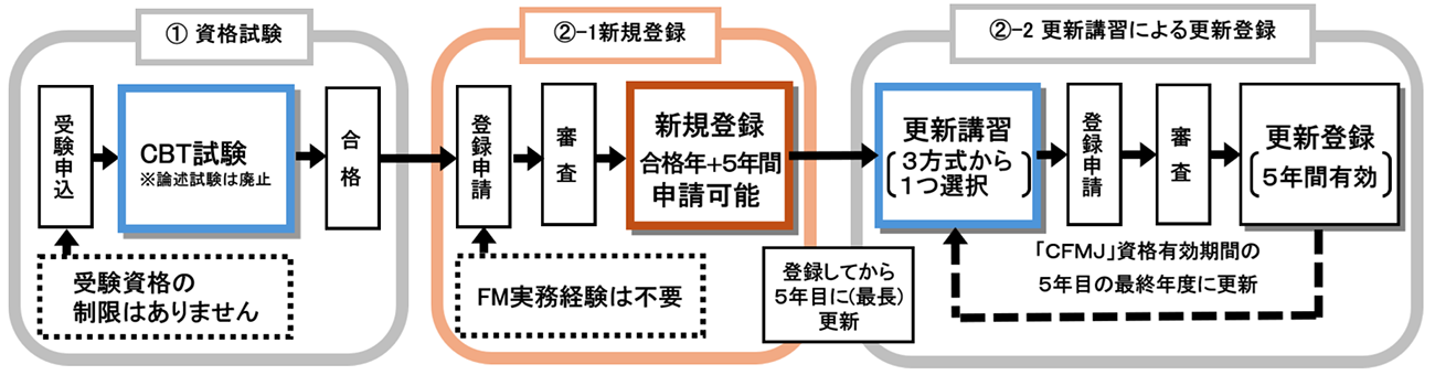 試験に合格し、登録の失格事由に該当しない(新規登録案内書P3参照)方は、申請により初回の「CFMJ」資格登録(以下、「CFMJ」資格新規登録という)を受けられます。